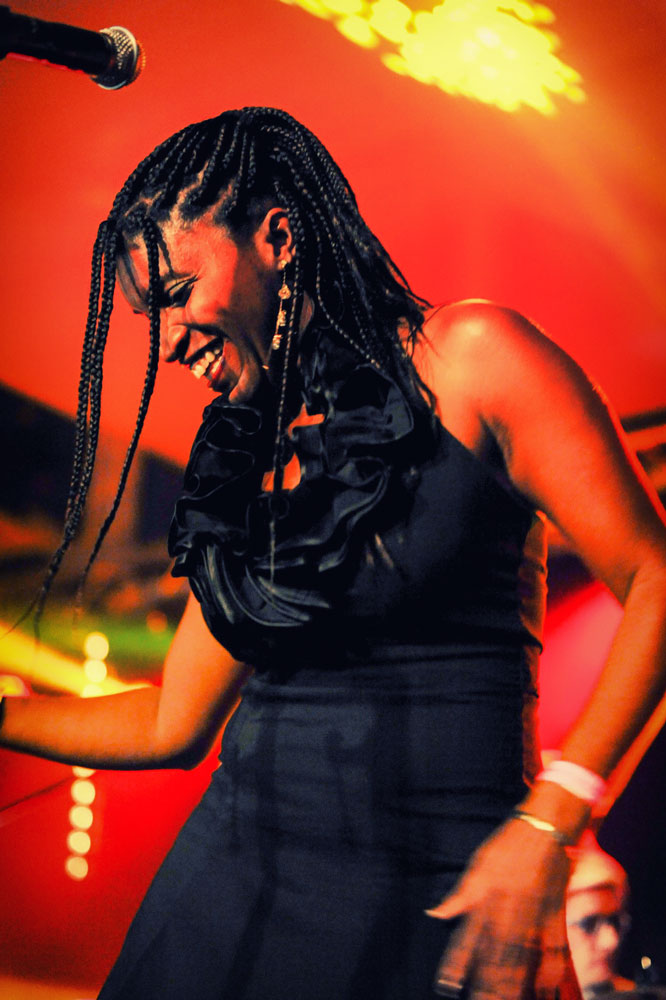 Ivonne González (singer, musician, and performer) with the Black Guiris Collective of Rogelio Lorda (dancer), Jorge Moré Calderon (dancer), Ibrahim Boureima (musician), Nicolás Spinosa (video performer)