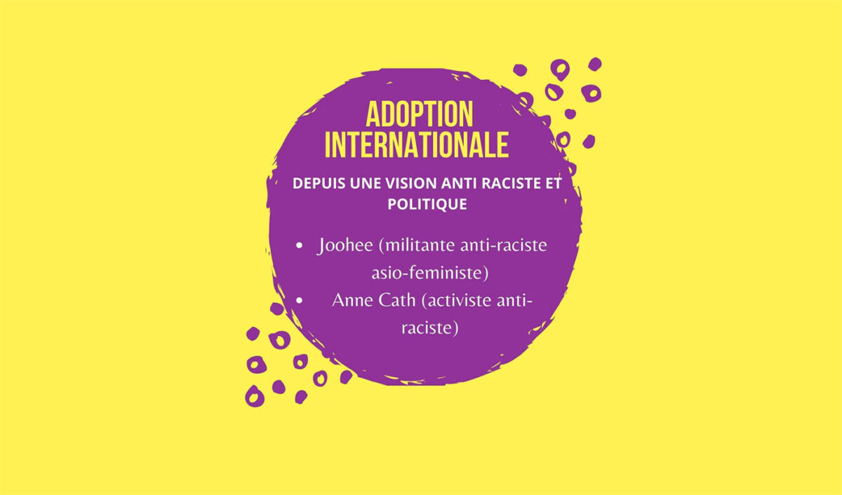 They met through the podcast “kiffe ta race” entitled “Where is the voice of adoptees?” Where Joohee was the invited guest. Although we have had different experiences as transracial adoptees in our respective families, one could be called a “good” one and the other a “bad” one, from a moral standpoint, we have come to a similar political and decolonial vision of the system that is international adoption.